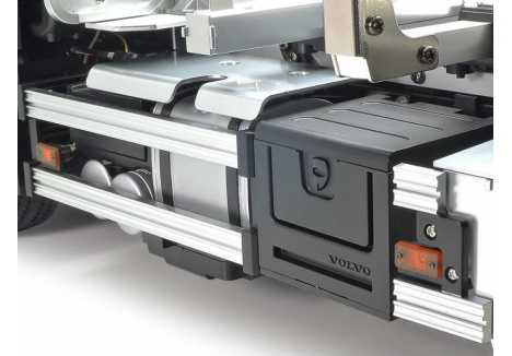 Volvo is a renowned actor in the global commercial vehicle market, with one of their flagship brands being the FH Series that underwent a full model change in 2012. This R/C model assembly kit recreates the 750hp 16.1-liter turbocharged inline-6 engine FH16 Globetrotter 750 6x4 timber truck from that range. The model has a realistic body, and a chassis featuring numerous metal parts. Gear changes are also possible via transmitter controls.