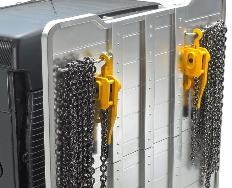 - Ladder frame features aluminum side channels with resin cross members.