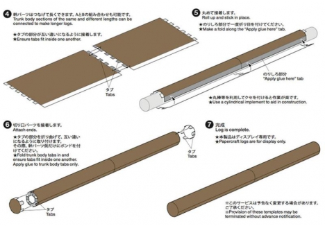 Tamiya is pleased to provide templates for the creation of papercraft logs - there are 2 types, and an instruction sheet for download at the links below: