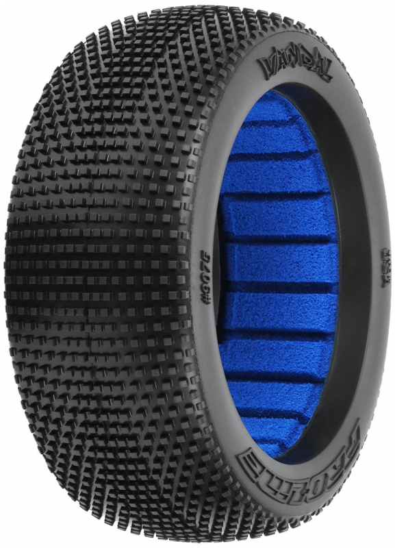 Vandal development started with Pro-Line's latest generation carcass profile that utilizes a single arc to create the sidewall geometry, then transitions from the sidewall to the crown with a larger radius resulting in a rounder and less edgy appearance. This carcass provides a tailored fit to the wheel and insert package, making mounting a breeze. Focusing on grip, the Vandal's center tread density is optimized for longevity in longer runs while the addition of micro-pins at the outer edges reduces edginess in the bumps. Competitors can expect the Pro-Line Vandal tires to deliver improved consistency, drivability, and durability.