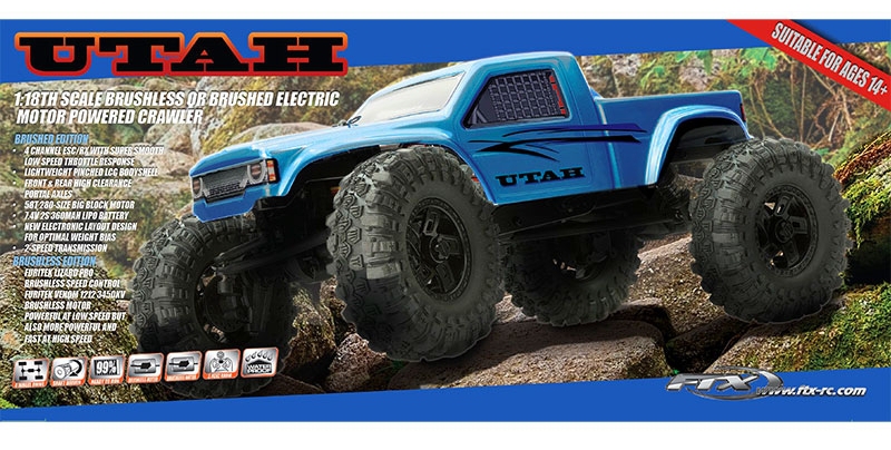 - Product Type: FTX FTX5487BL Utah crawler RTR blue, FTX FTX5487BL 1:18 brushless 4WD, FTX FTX5487BL RC crawler with portal axles, FTX FTX5487BL with LCG chassis and SOA steering, FTX Utah with Furitek Venom motor and 2-speed transmission