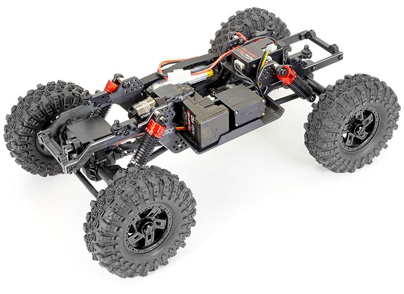 - LCG aluminium chassis – improves weight bias and lowers centre of gravity for enhanced crawling control