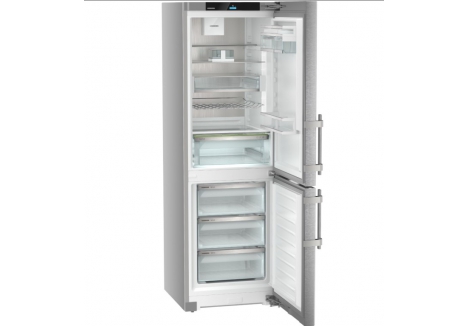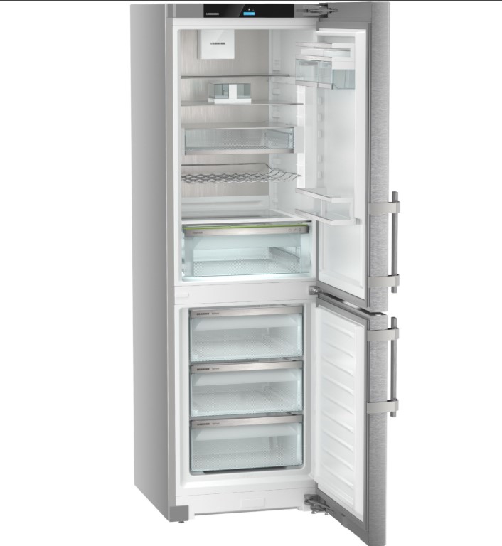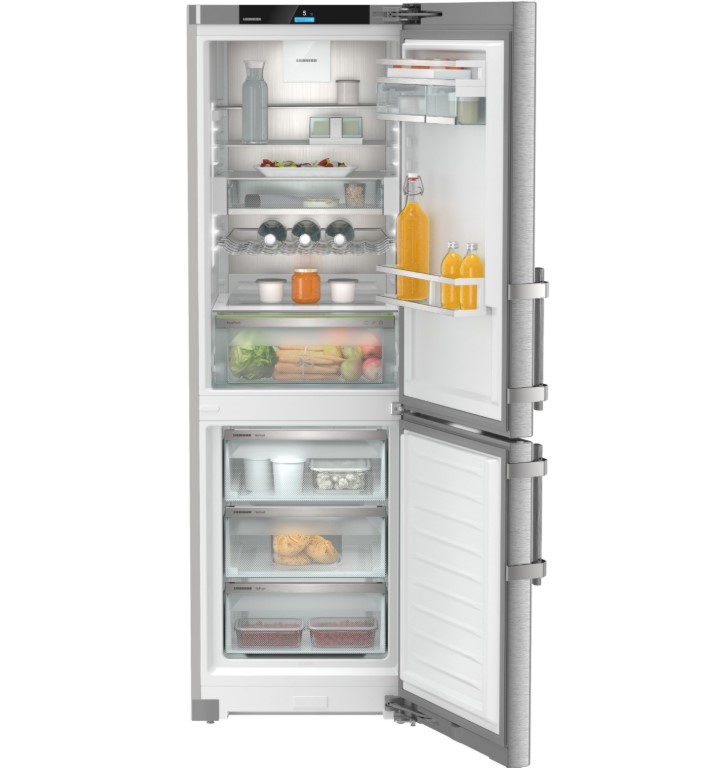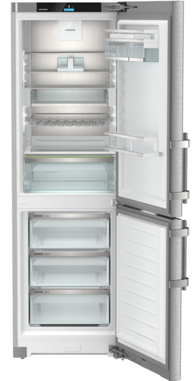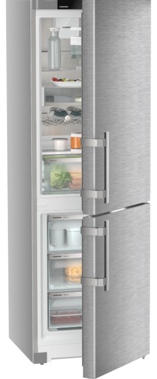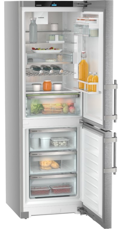 Rated energy efficiency class D under the latest EU guidelines, the Liebherr stainless steel freestanding fridge freezer consumes just 201 kWh/year. Its holiday mode reduces energy usage during extended absences, while automatic defrosting and humidity control further optimise performance. The appliance supports smart home integration via the optional SmartDeviceBox, enabling remote monitoring and control.