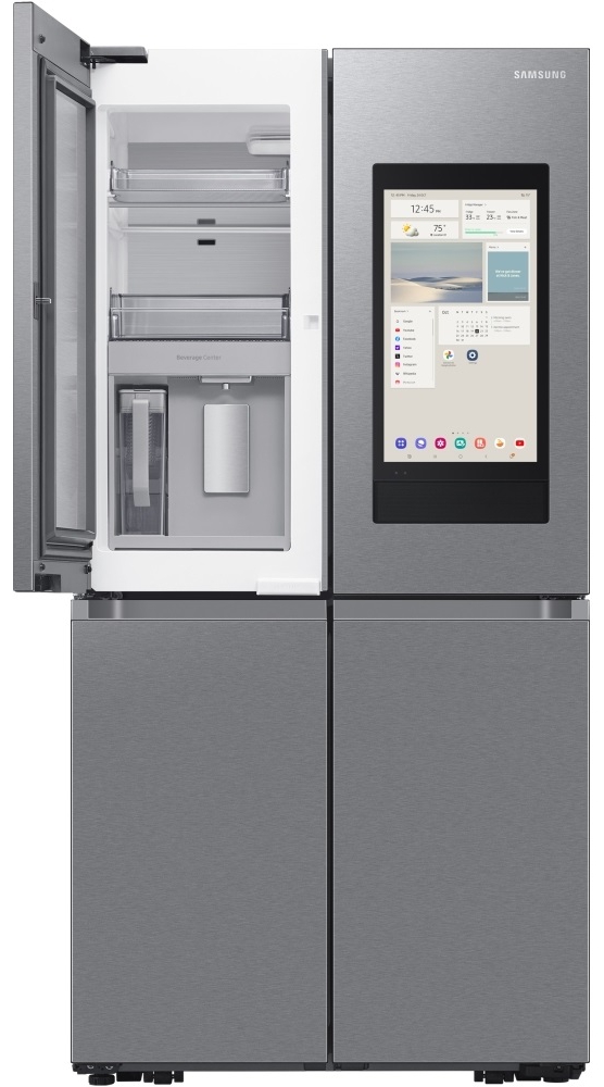 The Family Hub display allows users to manage shopping lists, view schedules, access recipes and control compatible smart home devices. With SmartThings support, the appliance can be monitored remotely, providing real-time notifications and enhanced control.