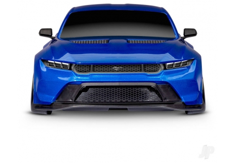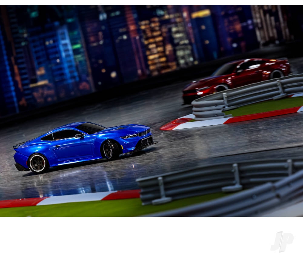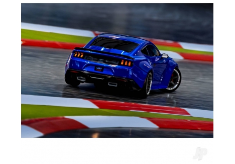 The clipless body design on the Traxxas Ford Mustang electric drift car TRX105237-4-BLUE eliminates traditional body post holes, resulting in a seamless, scale-accurate appearance. Reinforced mounts are integrated into the molded hood vents and rear spoiler, offering added durability during high-impact drift sessions. Quick-release functionality allows for fast battery changes and maintenance without the need for pins or loose parts. The injection-molded details—including grille, splitter, hood vents, side mirrors, and spoiler—enhance the visual realism and complement the bold metallic blue finish.