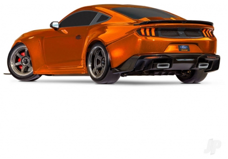 The clipless body design on the Traxxas Ford Mustang electric drift car TRX105237-4-CPR eliminates traditional body post holes, resulting in a cleaner, more realistic appearance. Reinforced body mounts are seamlessly integrated into the molded hood vents and rear spoiler, providing added durability during high-impact drift sessions. Quick and easy removal allows for fast battery changes and maintenance without the need for pins or loose parts. The injection-molded details—including grille, splitter, hood vents, side mirrors, and spoiler—deliver a show-stopping scale look that complements the metallic copper finish.