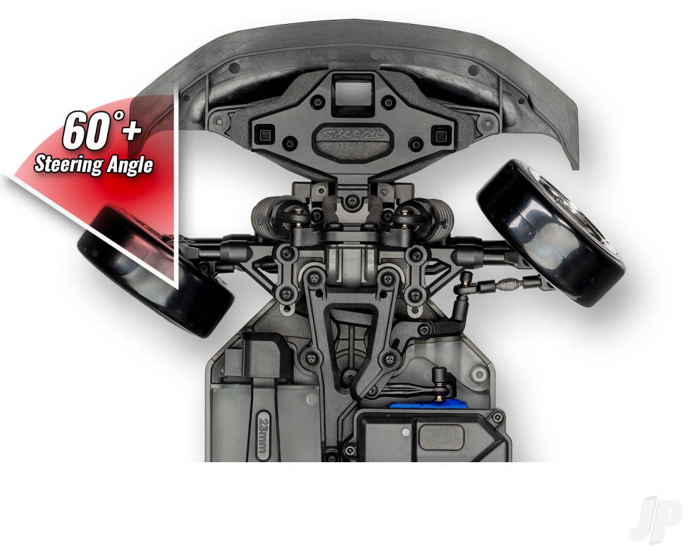 - High-angle steering – over 60° of steering throw for aggressive drift transitions