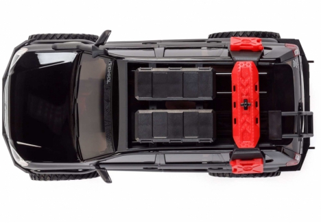 Officially licensed Black Rhino Raid wheels and Nitto Trail Grappler M/T tyres give the AXIAL SCX24 Lexus GX 470 C-AXI-1532T3 both visual authenticity and functional grip. The tyres feature a deep tread pattern designed for traction and clearance, while the wheels offer secure mounting and scale styling. This combination enhances the crawler’s ability to tackle diverse terrain while maintaining a realistic appearance that complements the detailed body design.