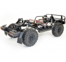 Underneath the Trooper a CNC machined LCG chassis holds a compact single speed gearbox and split transmission mounted as low as possible. Reverse transmission helps counter torque twist effect. A 3-link with Panhard bar set-up is featured at the front with traditional 4-link rear all controlled by aluminium oil filled shock absorbers. Straight axles front and rear house spiral cut drive and pinion gears, with the front using heavy-duty universal driveshafts.