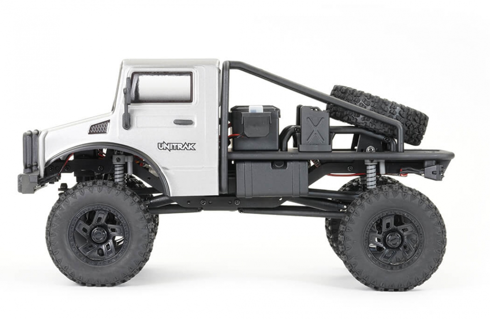 Choose from three super detailed 1.2mm thick painted lexan bodies; Rock Van, Texan pick up or Unitrak utility vehicle, all featuring moulded scale accessories and LED lights.