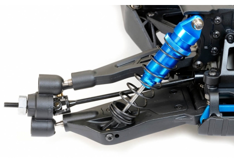 Long throw, double wishbone suspension with pivot ball front set-up, feature reinforced lower arms for less flex, while aluminium adjustable, oil filled big bore shock absorbers, finished in stylish blue are ready for what awaits on each corner.