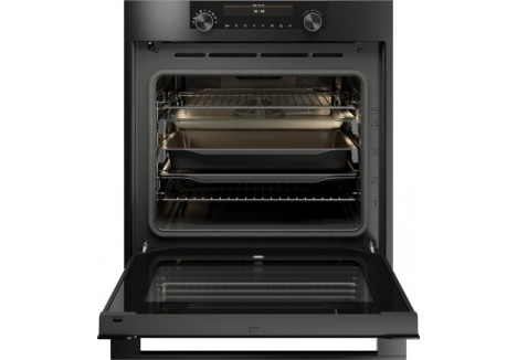 Built to the highest quality, this black steel multifunction single oven features a soft-closing door with durable hinges, ensuring quiet and smooth operation. The cool door design enhances safety, while the removable door glass makes cleaning a breeze. The large interior is illuminated on both sides, offering great visibility while you cook.