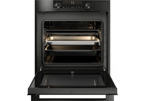 The asko built in multifunction oven ocs8687b features a sophisticated black steel finish and seamless integration into any modern kitchen. Its TFT Matrix display and large tactile controls provide intuitive operation, while the SoftOpen and GentleClose door ensures quiet, premium functionality. Adjustable interior lighting and fully extendable telescopic shelves on two levels make this black steel multifunction single oven as practical as it is beautiful.