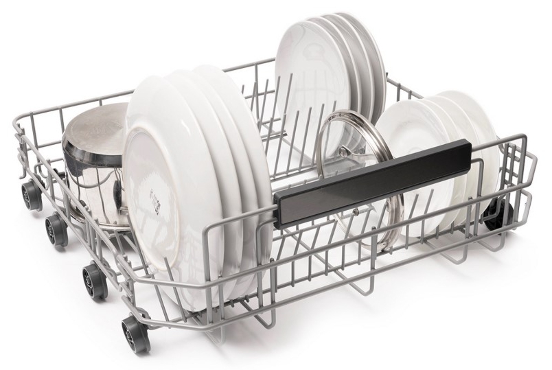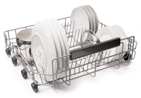 - Quiet full size dishwasher with cutlery tray and adjustable basket for efficient and silent operation.