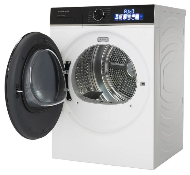 The Schonhaus 8kg heat pump tumble dryer is a reliable solution for modern households seeking high performance and low energy usage. Engineered with heat pump technology, it offers gentle and efficient drying while consuming significantly less electricity. Its spacious 8kg drum is ideal for medium-sized families, providing flexibility for everyday laundry cycles without sacrificing performance.