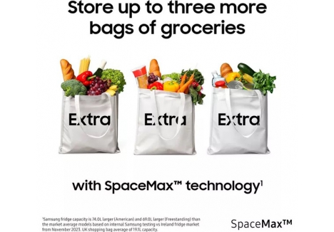 Rated E for energy efficiency and operating at just 37 dBA, the RS65DG54M3B1EU ensures that performance doesn’t come at the cost of quietness or excessive power usage. The inclusion of Samsung’s Digital Inverter Compressor enhances energy savings and reliability, backed by a 20-year warranty. This reinforces its status as an affordable Samsung SpaceMax fridge freezer with ice and water dispenser that balances performance and sustainability.