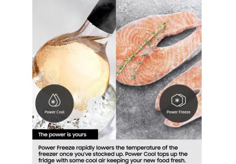 The Power Cool and Power Freeze functions ensure that groceries quickly reach the optimal temperature after being added to the fridge or freezer compartments. This rapid drop in temperature is especially useful after large grocery trips or when preserving delicate items. The freezer is capable of cooling up to 15kg of food within 24 hours, maintaining food quality even under heavy loads.