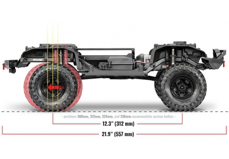 - Wheelbase: 31.2 cm – adjustable to four positions for custom trail setups