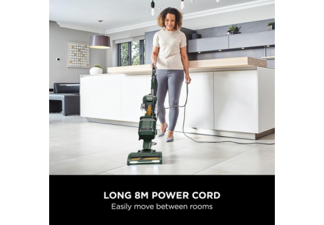 The Shark Lift-Away vacuum cleaner for carpets, hard floors and stairs is designed for ease of use and maximum convenience. With intuitive handle controls, users can switch between carpet and hard floor modes and adjust suction levels to suit different surfaces. The Lift-Away feature enables portable cleaning for stairs and above-floor areas, while swivel steering enhances manoeuvrability around furniture. The long 8m power cord provides a total cleaning reach of 8.47m, reducing the need to switch sockets frequently. LED headlights help users spot hidden messes, making cleaning more efficient and effective.