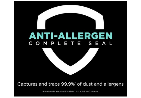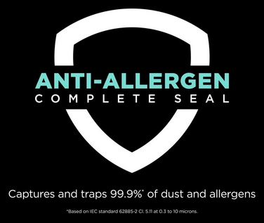 - Anti-Allergen Complete Seal – traps 99.9% of dust and allergens inside the vacuum