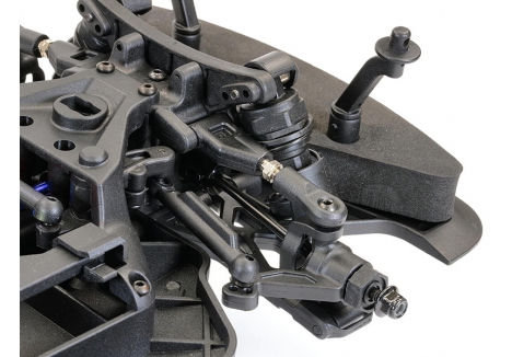 Oil filled shock absorbers, anti-roll bars and adjustable double wishbone suspension lets you tweak to suit your settings and tyre choice; either treaded rubber tyres for street racing, featuring 25mm wide front and 30mm wide rear for better stability at high speed or hard plastic boots on 6-spoke wheels for sideways drift driving.