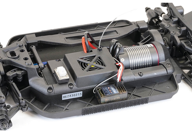 - Moulded wide main chassis featuring screwless base