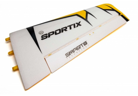 Whether you're a low-time pilot looking for a next step model after mastering your trainer and you're interested in learning to perform more advanced aerobatics, or you're an experienced pilot looking for an all-around fun-to-fly sport model, the E-flite Sportix 1.1m is a perfect choice. It's designed to be capable of basic, precision, and aggressive aerobatics, while also being smooth, stable, and predictable in every phase of flight. It was also designed to include a variety of modern-day features and conveniences from LED navigation lights to a two-piece horizontal stabilizer and wings with hands-free servo connections that can be installed and removed without the use of tools or fasteners. Yet it's also conveniently sized to be easy to store and transport without disassembly – and so it can be flown at large parks and sports fields as well as RC flying fields. Factory-installed digital and metal-geared servos with ball-link equipped linkages provide precise and reliable control at every speed. The power system includes a Spektrum outrunner motor and an Avian 45-amp Smart Lite ESC that are compatible with popular 3S and 4S 2200-3200mAh batteries. And the BNF Basic version is equipped with a factory-installed Spektrum AR631+ receiver featuring exclusive and enhanced AS3X+ along with optional-use SAFE Select technologies.