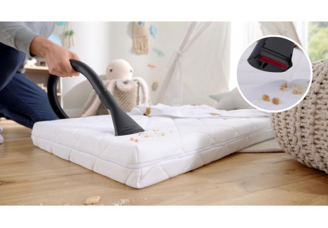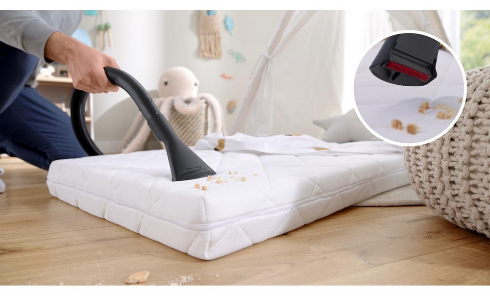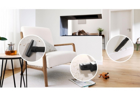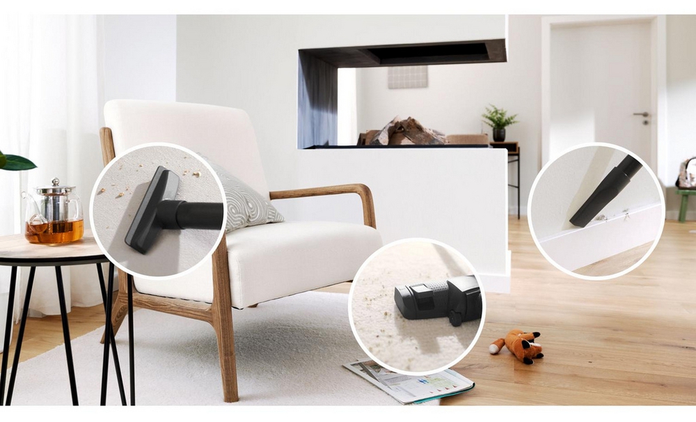 The Bosch BGB41HYGGB comes with a full set of accessories for versatile cleaning. These include a universal nozzle, crevice tool, upholstery nozzle, XXL crevice tool, mattress tool, and a dedicated hard floor nozzle—neatly stored for quick access. Its compact, lightweight body ensures smooth manoeuvring around furniture and tight spaces.