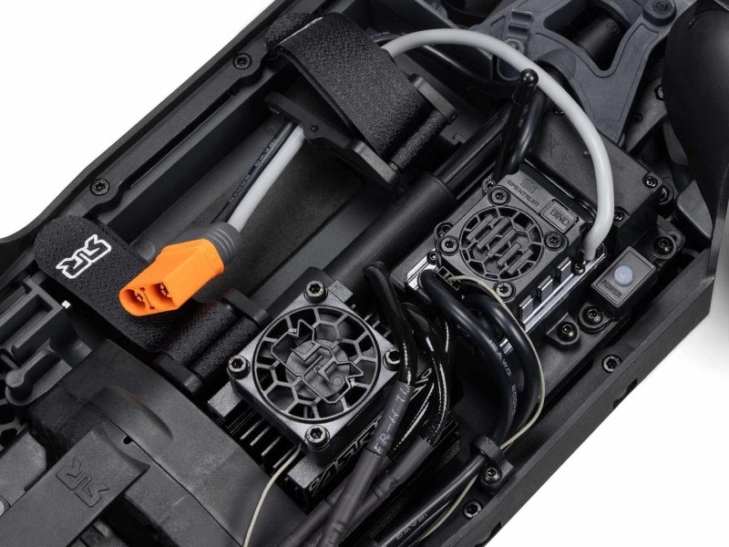 - ESC: Spektrum SLT 80A 2-in-1 Waterproof ESC & Receiver – supports 2S/3S LiPo and integrates Dynamic Stability Control