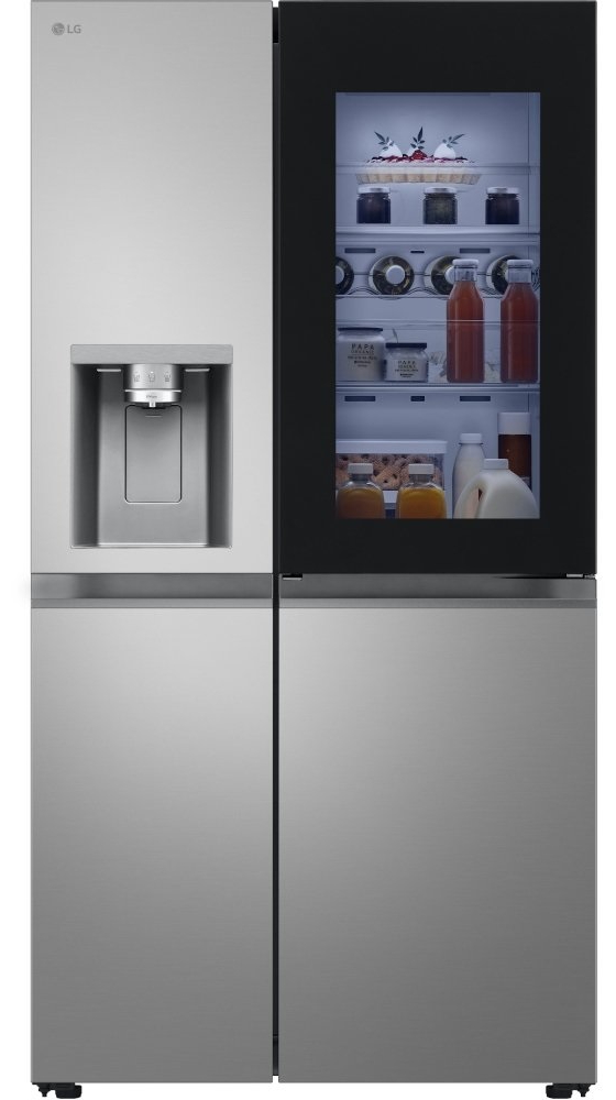 The side-by-side fridge freezer with InstaView door incorporates LG’s Door-in-Door™ design, allowing easy access to your most-used items without exposing the entire fridge to warm air. This secondary compartment reduces cold air loss and supports energy efficiency while keeping your go-to drinks and snacks within arm’s reach. With its elegant tinted glass and soft-edge detailing, it offers a highly functional layout that enhances the overall usability of your kitchen appliance.
