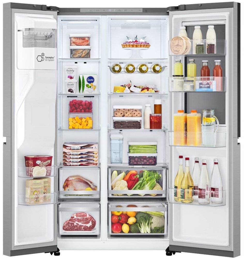 Thanks to LG’s advanced temperature management systems, including DoorCooling+™ and Linear Cooling™, the GSXE81PYBD ensures even cooling throughout the fridge. American style fridge freezer in prime silver finish units like this one deliver precision cooling that protects food texture, flavour, and shelf life. By maintaining minimal temperature fluctuation, fresh produce stays crisp and vibrant for longer – perfect for households focused on healthy, fresh meals.