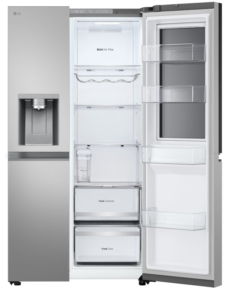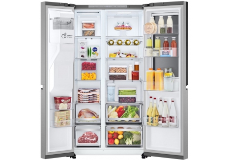 With a substantial 628 litres of storage, the GSXE81PYBD offers ample room for groceries, bulk items, and meal-prep containers. It features adjustable tempered glass shelves, transparent freezer drawers, and spacious vegetable compartments. This LG 628L American fridge freezer silver is ideal for large households or anyone who values organisation and visibility in their food storage layout.