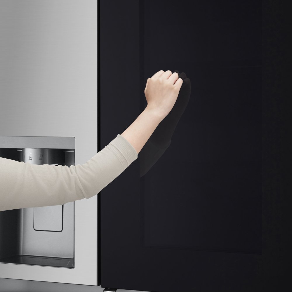 With the latest InstaView™ technology, the LG InstaView side-by-side fridge freezer allows you to knock twice on the glass panel to reveal the contents inside without opening the door. This feature not only adds a futuristic aesthetic to your kitchen but also minimises temperature fluctuations by reducing the frequency of door openings. It helps maintain freshness while also offering added convenience, especially in fast-paced family kitchens.