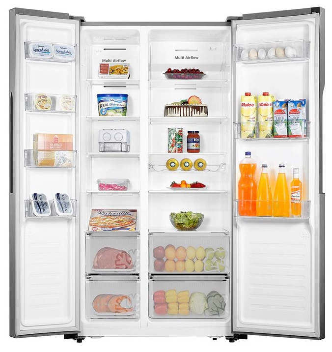 The Teknix THSBS1791PX with 334L fridge and 185L freezer capacity is built to accommodate the storage needs of busy families and shared living spaces. The fridge compartment offers 334 litres of space for fresh produce, dairy, beverages, and everyday essentials, while the 185-litre freezer provides ample room for frozen meals, batch cooking, and bulk purchases. This side-by-side configuration allows users to organise contents efficiently and access items without bending or reaching. Whether you're stocking up for the week or preparing for a gathering, the layout and capacity of this appliance support a well-managed kitchen routine.