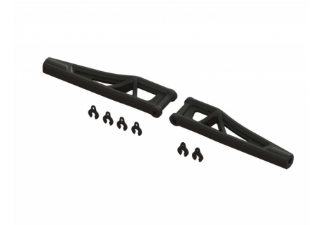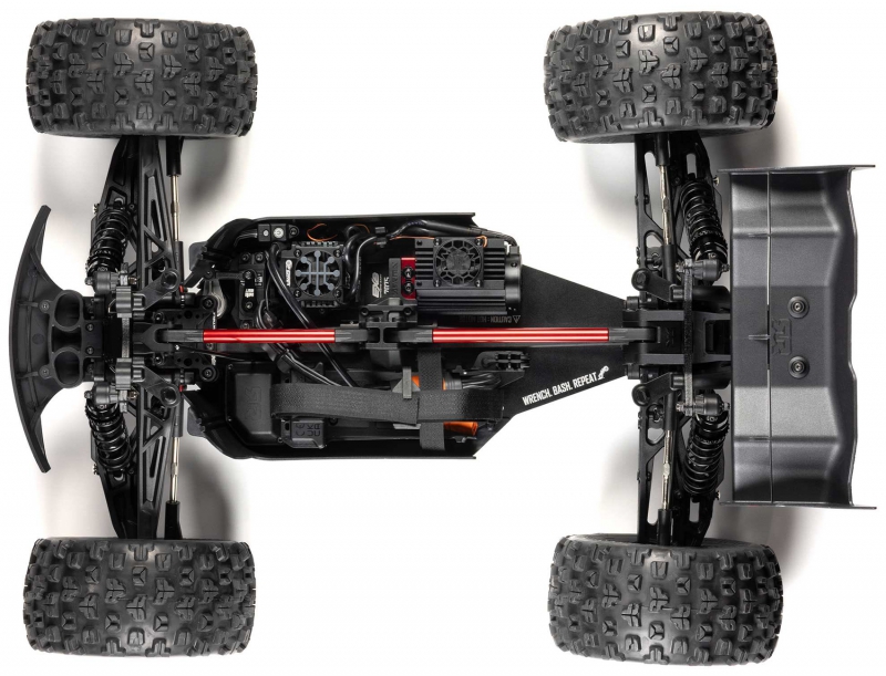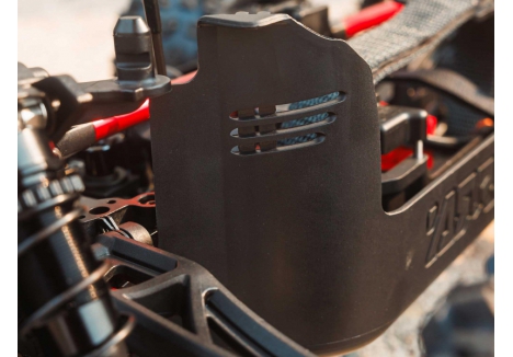 The ARRMA C-ARA8608V6T1 4WD EXB speed truck is built on a black-anodized 7075 T6 aluminium chassis plate that’s engineered to absorb the punishment of high-speed jumps and rough terrain. Reinforced with a two-piece tower-to-tower brace, stainless steel skid plate, and EXB wing mount, the chassis delivers structural integrity and long-term durability. Taller composite side guards protect internal components from dirt and debris, while the inner body tower adds rigidity and simplifies maintenance. These EXB upgrades ensure the ARRMA C-ARA8608V6T1 brushless monster truck remains stable and responsive under extreme conditions, making it the ideal choice for drivers who demand no-compromise toughness.