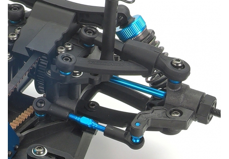 - Camber and caster angles adjustable via aluminium turnbuckle shafts and lower arm spacers