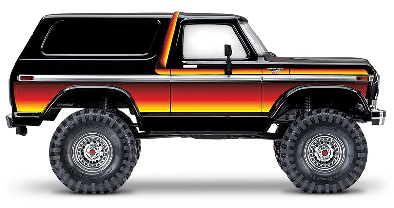 Originally introduced in 1966 as a 4X4 compact SUV, the Ford® Bronco matured as a full-size truck in the late 1970s, cementing its status as a rugged off-roader. Traxxas honors the classic 1979 Ford Bronco with this beautifully detailed and faithful reproduction mounted on the incredibly capable TRX-4® chassis. From the chrome wheels and bumpers to the gorgeous Sunset or red graphics, the TRX-4 recaptures the Bronco’s iconic era with the toughness and technology that could only come from Traxxas.