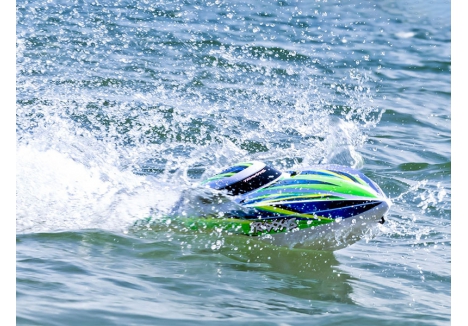 There’s no need to back off the throttle or tone down the fun with Disruptor's Rapid Right security. Take full advantage of 4s Velineon® brushless horsepower anytime, anywhere. If Disruptor should land upside down, applying reverse full throttle rights the boat almost instantly and gets you back in the action.