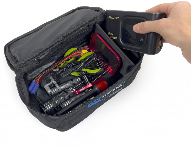 The Charger/Tool bag has been designed to fit within the larger RC Hauler Bag. Depending on the orientation, you can fit 2 or 3 Charger/Tool Bags across the width of the hauler taking the organisation of your kit to the next level.