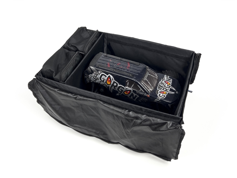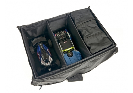 The internal space can be divided into 2 individual areas for whatever you need to store making it the perfect accessory bag. Like it's big brother the divider can be positioned along the length of the bag or leave it out and you can fit an SCX24 and its transmitter inside.