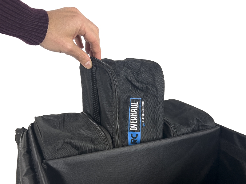 It perfectly fits into the RC Overhaul Hauler Bag offering a way to keep spares, tools, wheels and tyres neatly stored alongside your RC vehicle. Depending on your need you can fit 2 to 3 bags across the width depending on how much space is required for other things. Or you could fit a maximum of 9 bags into the Hauler for those looking to keep everything organized and tidy.