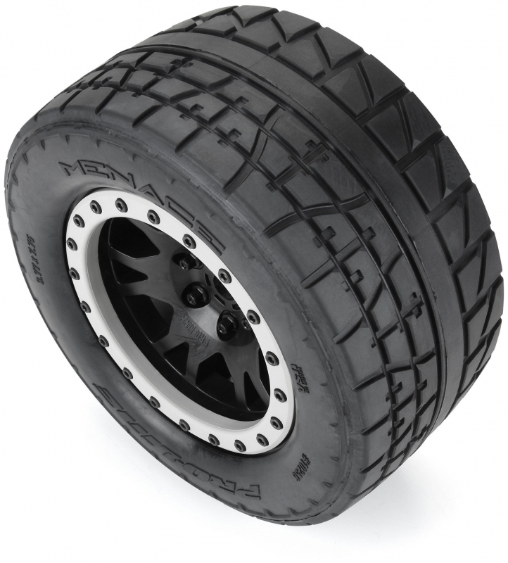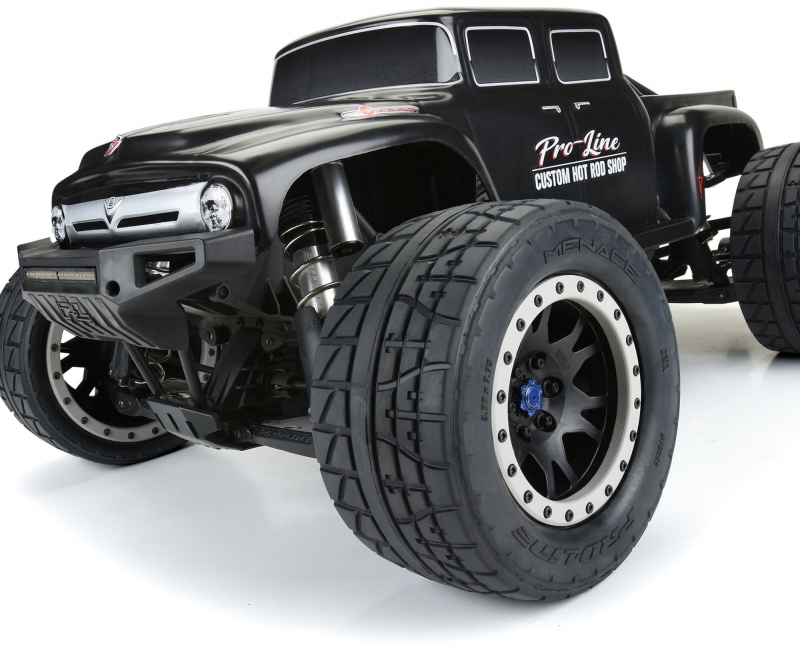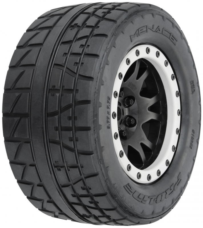 This is a pair of Menace HP 4.3" tires. Pro-Line has taken our belted tire & wheel combination for X-MAXX® to the next level with our highest-performance street tire ever: The Menace HP mounted on Impulse 4.3" Pro-Loc Wheels! Pro-Line Menace tires are 1:1 racing-inspired tread designed to give your rig massive traction on your street, parking lot, or track.