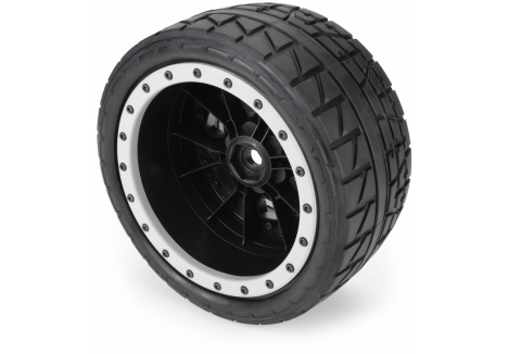 PRO1025613| Menace HP 4.3" Pro-Loc Street BELTED Tires Mounted on Impulse Pro-Loc Black 24mm Wheels (2) with Stone Gray Rings for X-MAXX® Front or Rear