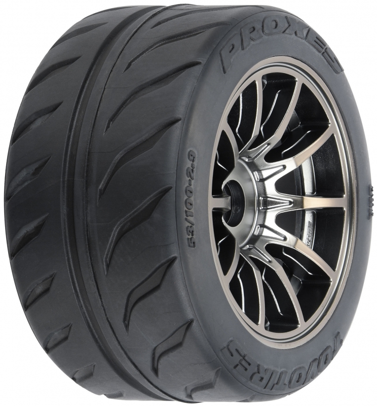Inspired by 1:1 GT3 racing wheels, the Spectre 10-spoke wheel gives your Infraction™ a striking look with a satin gunmetal finish and amazing scale detailing. The Proxes/Spectre combo comes pre-mounted so you don't have to worry about gluing your tires or waiting for them to dry. Get maximum grip and stability so you can be faster than your buddies with Pro-Line's Toyo Proxes R888R BELTED street tires!