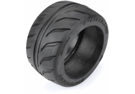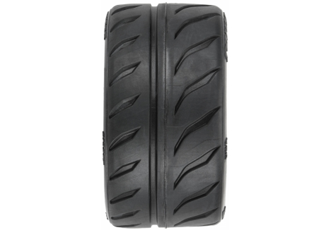 All the details from the full-size high-performance competition tire have been recreated to give your Infraction™ the ultimate in scale looks, street performance, and long-lasting wear. The Proxes R888R is known for extreme grip, cornering, and braking stability in the full-scale world on track, and it's no different in the RC world as these tires will transform the handling of your car or truck. The large tread blocks on the outside tread maximize lateral grip while the wide center rib improves directional stability for all-out speed runs. A High-Performance herringbone weave pattern Belt reinforces the inside of the Proxes for high-speed runs, while our S3 compound provides long-lasting tire wear.