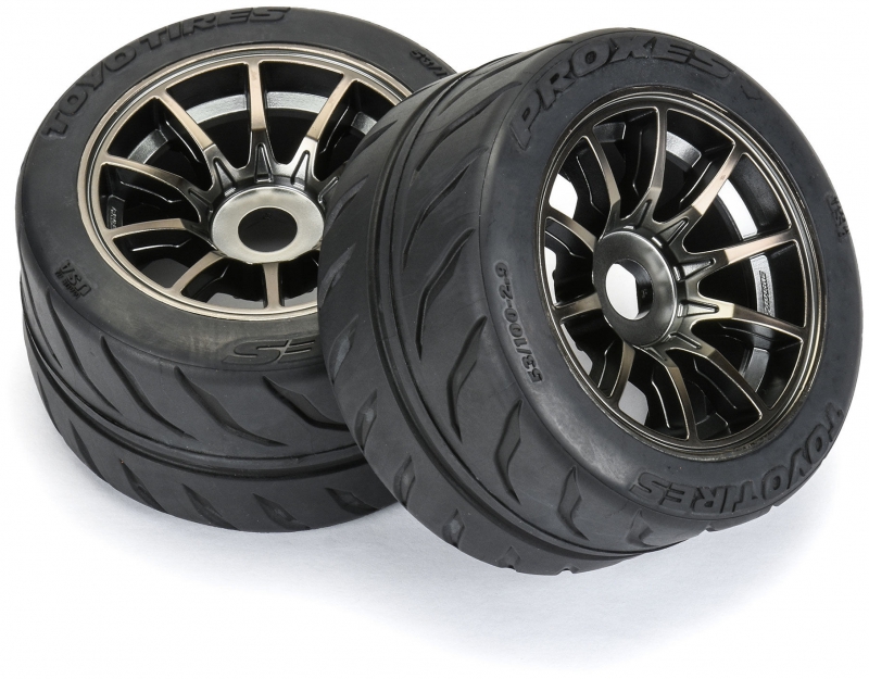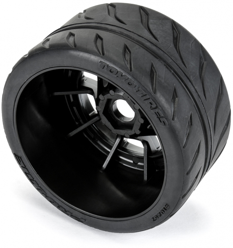 This is a pair of Toyo Proxes R888R 53/100 2.9" S3 (Soft) Street BELTED Tires mounted on Spectre wheels. Pro-Line is proud to announce a partnership with one of the leading performance tire manufacturers - Toyo Tires! This collaboration begins with our first tire for the popular ARRMA® 1/7 Street Bash line of vehicles - the Toyo Proxes R888R.