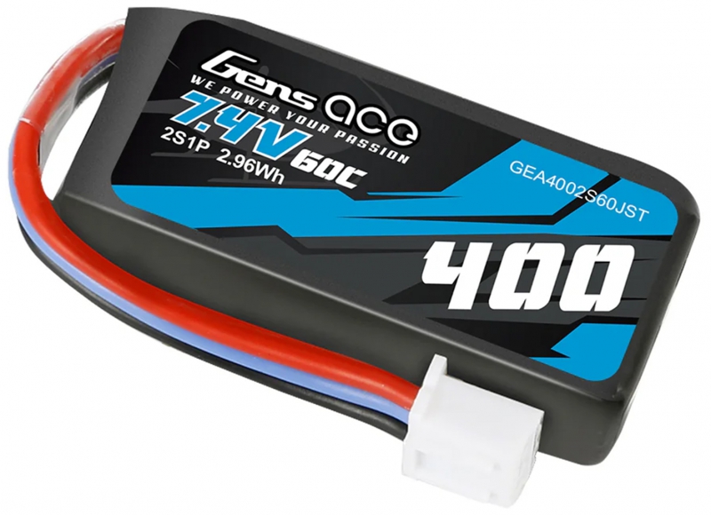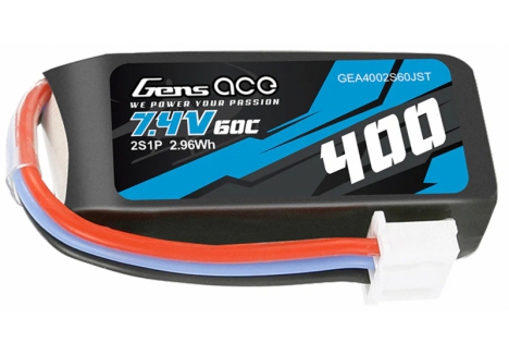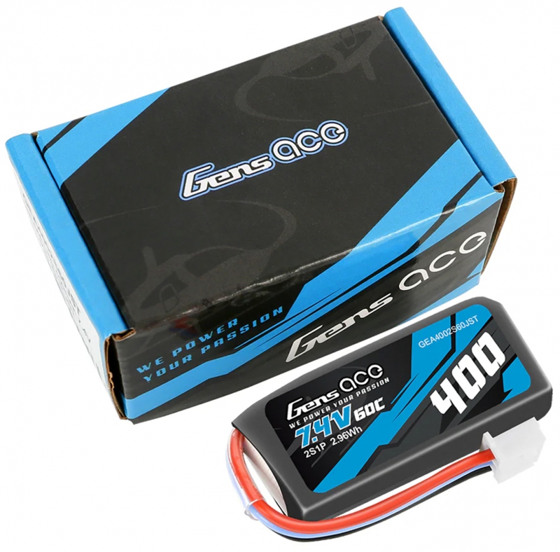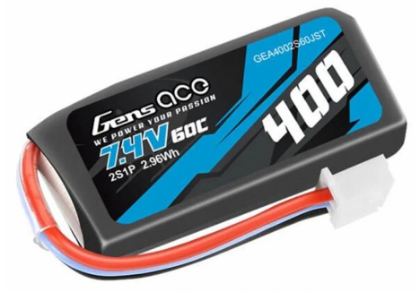 Gens ace 400mAh 7.4V 60C 2S1P Lipo Battery Pack with JST Plug is one of the top rank battery corporations with deep research and manufacturing on NIMH; LI-PO; LI-FE by the effort of 200 professional engineers and technicians with 20 years of exquisite battery technology. The Gens Ace brand holds the traditional concept of "excellent quality"; "Optimization" & "Priority" in Sales & Services. All batteries are tailored for various scales of the RC Models such as electronic cars; aero planes; vessels and other models; toys; electric tools; electric bikes; electric autos; digital products; etc.