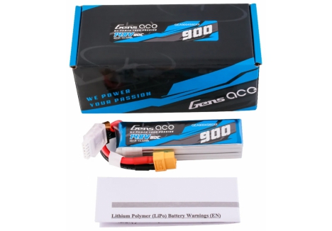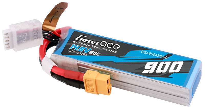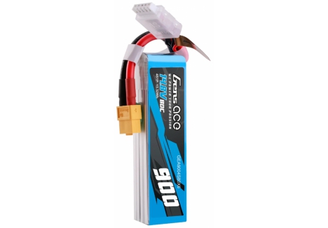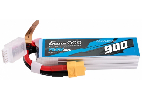 Gens Ace 900mAh 4S 80C Lipo battery is a high-quality lipo battery; produced by Gens Ace lipo battery manufacturers; max continuous discharge is 80C; Gens Ace 900mAh 14.8V 80C 4S1P Lipo Battery Packs are suitable for F5J and performance motorgliders.