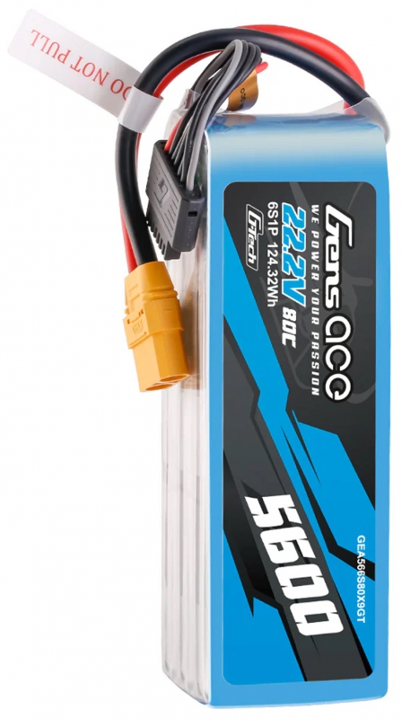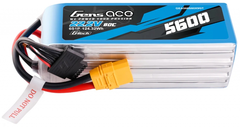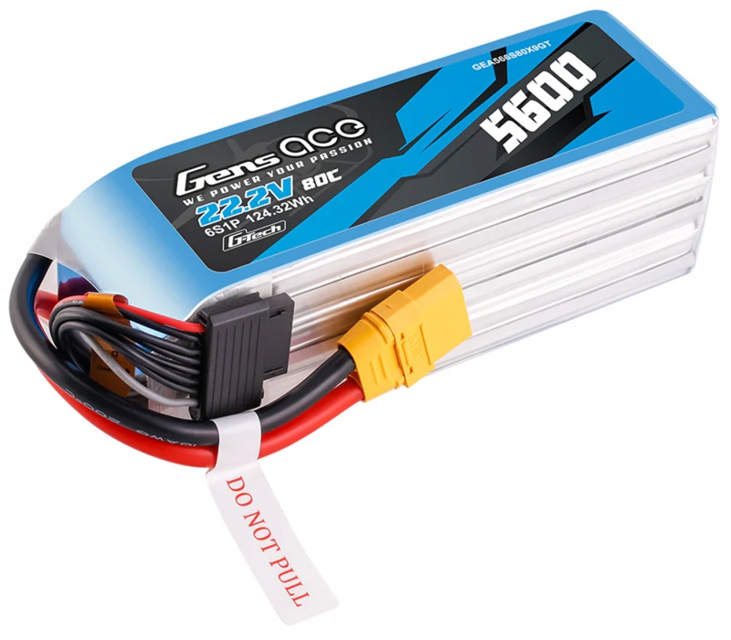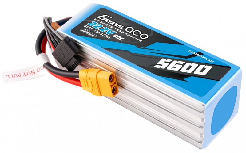 - (1) Gens Ace O-GT6S5600-80X9 6S HV 22.2V 5600mAh 80C Softcase LiPo Battery with XT90 Connector