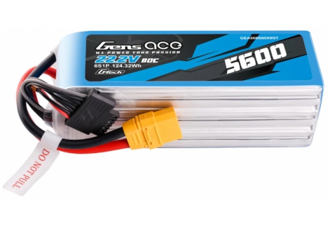 Product Description of Gens Ace O-GT6S5600-80X9 G-Tech 6S 5600mAh 80C LiPo battery with XT90 connector